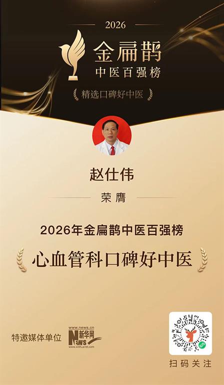 近日,2026年度「金扁鹊中医百强榜」权威发布。我院赵仕伟副院长作为深耕中医心血管领域近五十年的知名专家,凭借精湛医术、显著疗效与良好口碑,从全国13万余名医师中脱颖而出,连续四年获此权威认证,充分彰显其专业实力与行业高度认可。